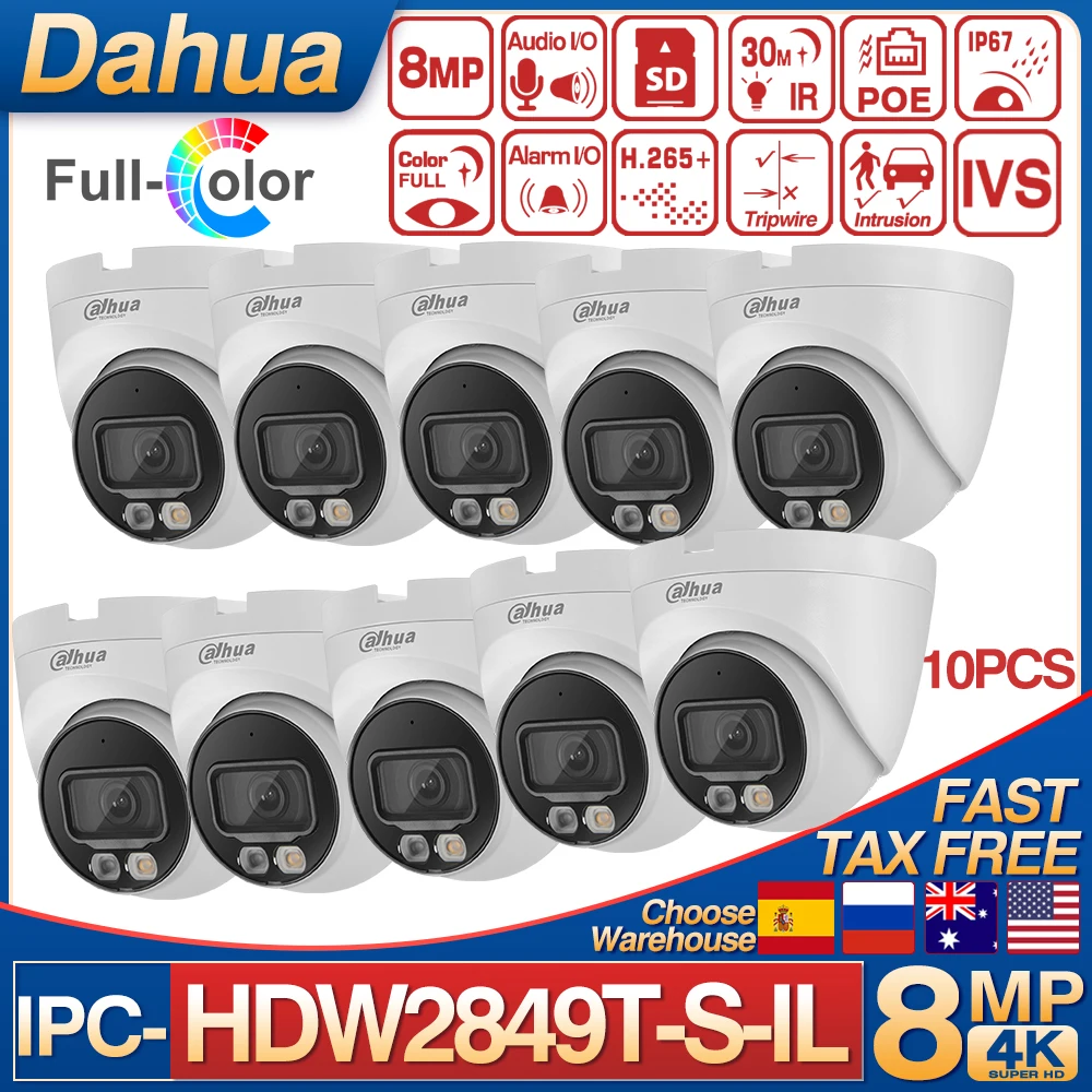 10PCS Dahua 4K 8MP Full-color IP Surveillance Camera IPC-HDW2849T-S-IL Built in MIC IR 30m Smart Dual Light Dome Network Camera
