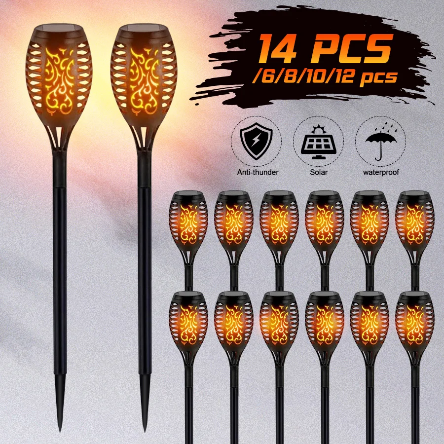 4-16Pcs Solar Flame Torch Lights Optional Flickering Light Waterproof Garden Decoration Outdoor Lawn Path Yard Patio Floor Lamps