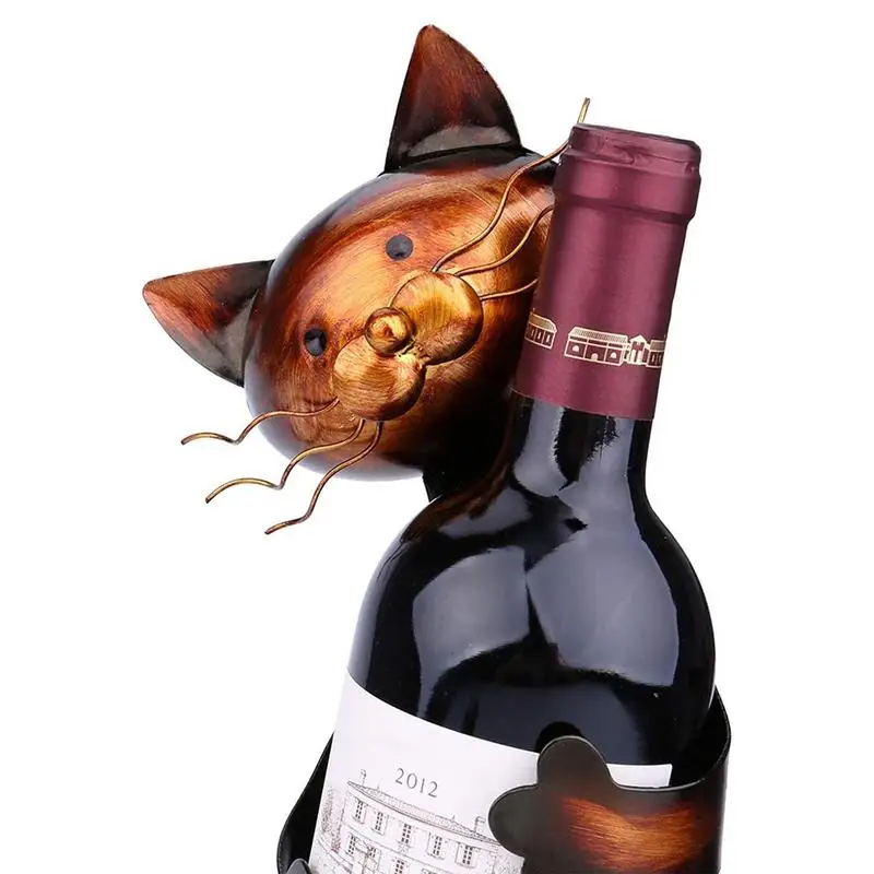 Creative Standing Cat Wine Holder Home Decor Animal Metal Sculpture Wine Display Stand Rack Kitchen Bar Centerpiece Decoration