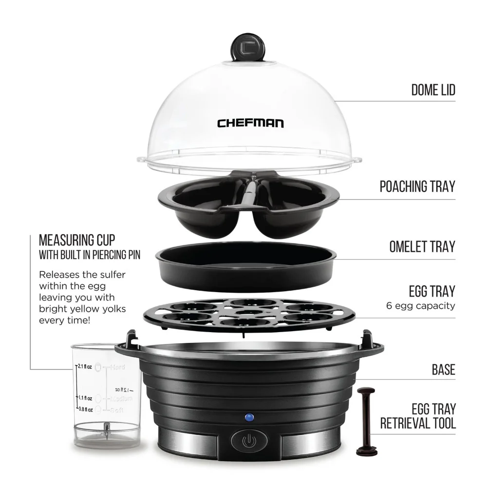 Everyday Plastic Electric 6 Egg Boiler Cooker With Built In Timer, Black