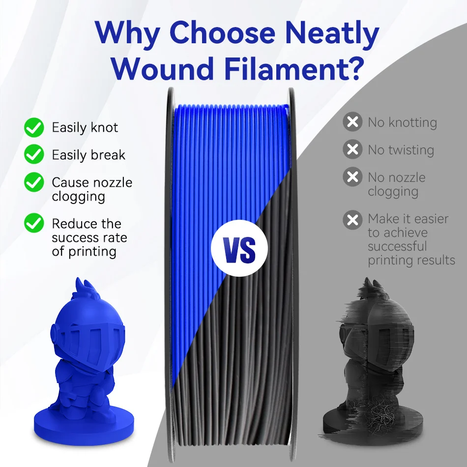 JAYO has a professional production line with strict control of neatly lined up lines to avoid knots during printing.Completely mechanical wire winding and strict manual checks to ensure a neat lines of JAYO PETG/PLA+/WOOD/SILK PLA filament with few knots, avoiding possible breaks.